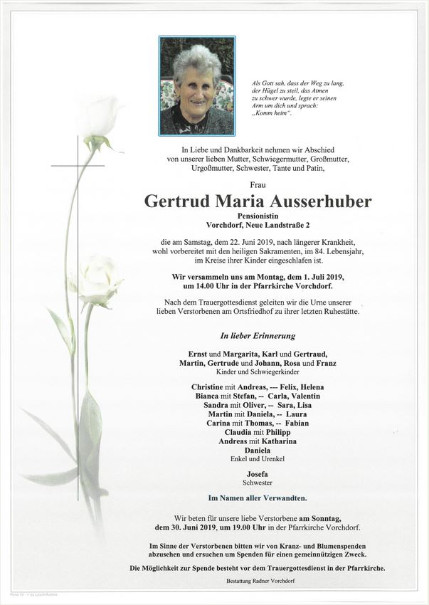Gestorben am Samstag, 22. Juni 2019 im 84. Lebensjahr