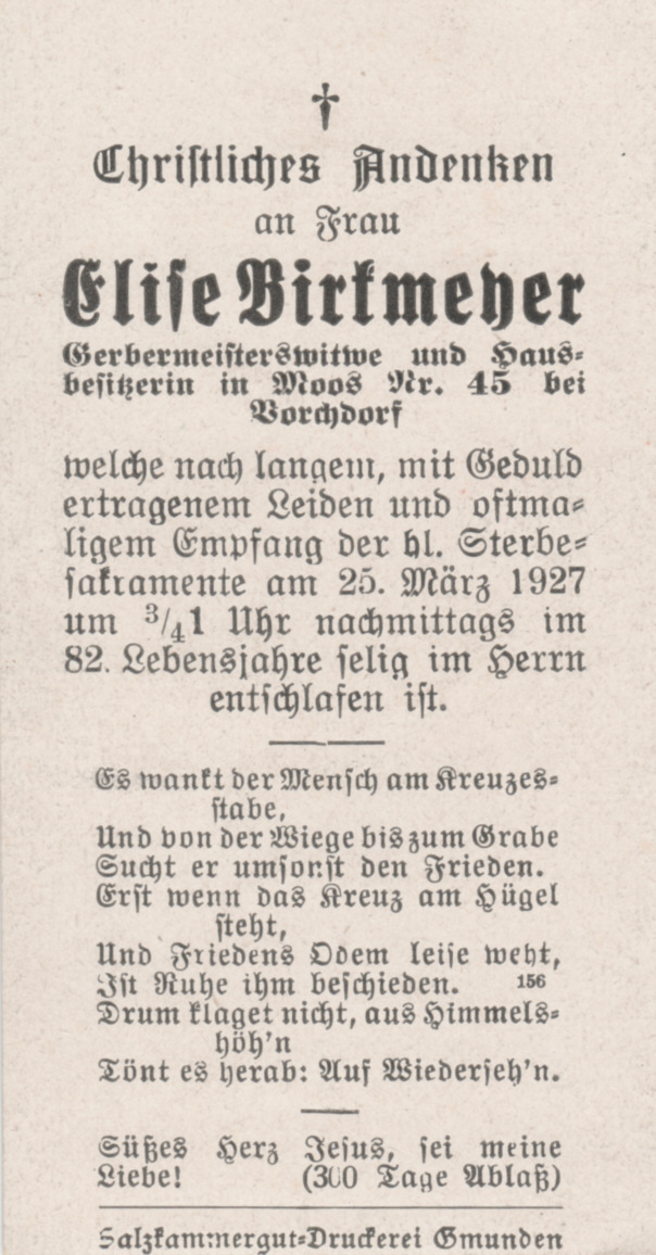 Gestorben am Freitag, 25. März 1927 im 82. Lebensjahr