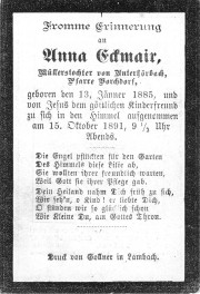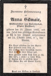 Gestorben am Donnerstag, 15. Oktober 1891 im 7. Lebensjahr