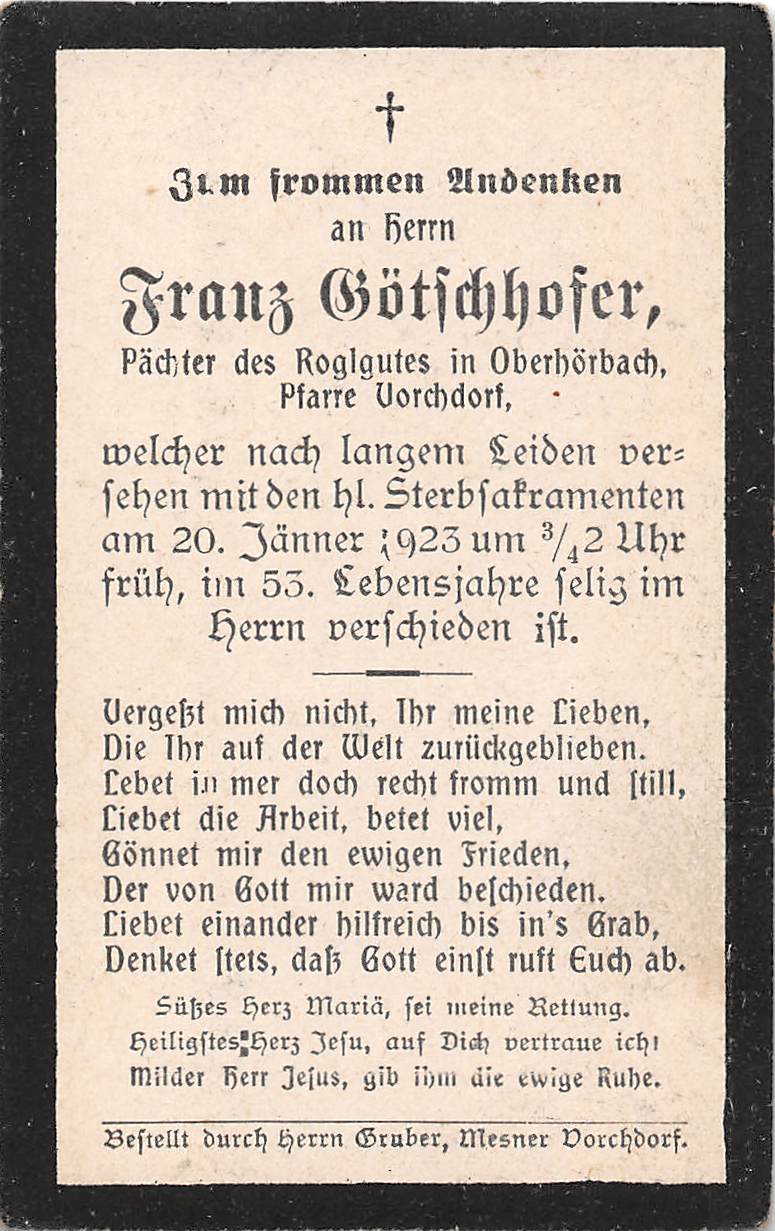 Gestorben am Samstag, 20. Januar 1923 im 53. Lebensjahr