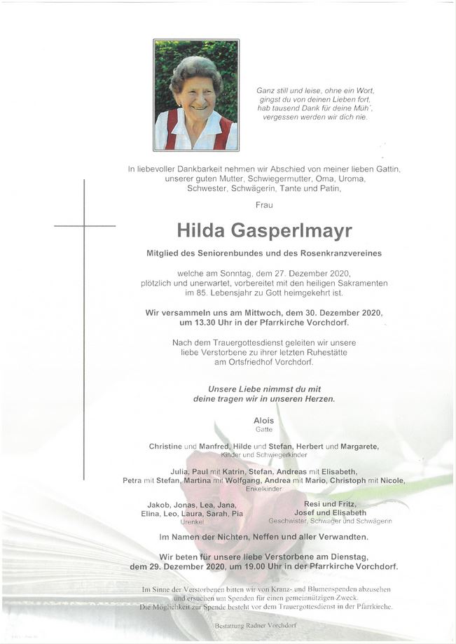 Gestorben am Sonntag, 27. Dezember 2020 im 85. Lebensjahr