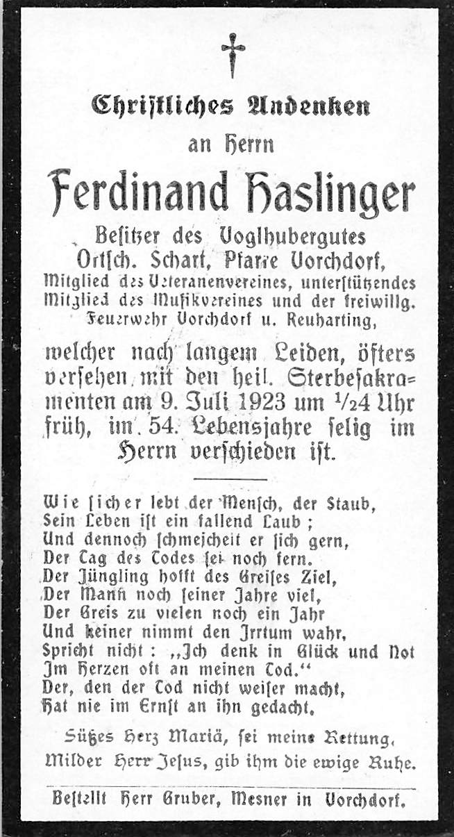 Gestorben am Montag, 09. Juli 1923 im 54. Lebensjahr