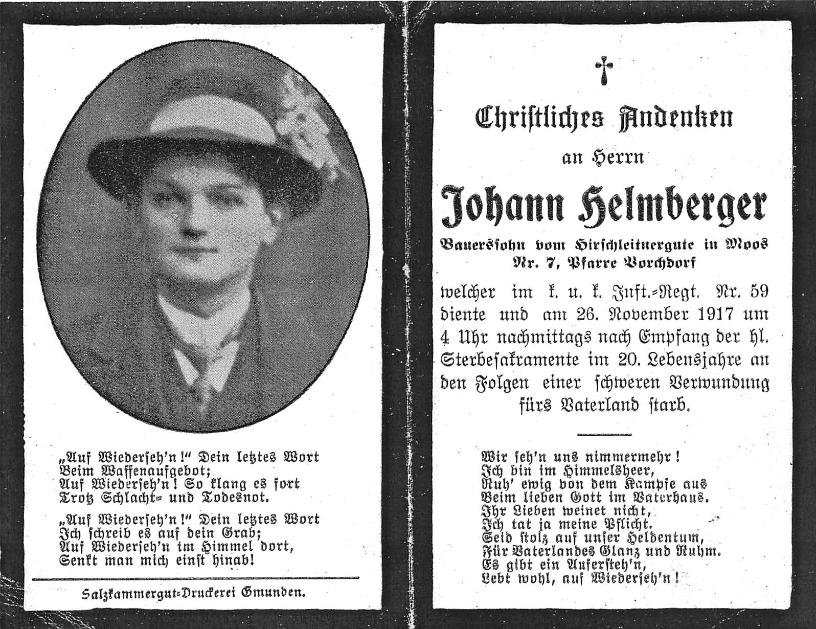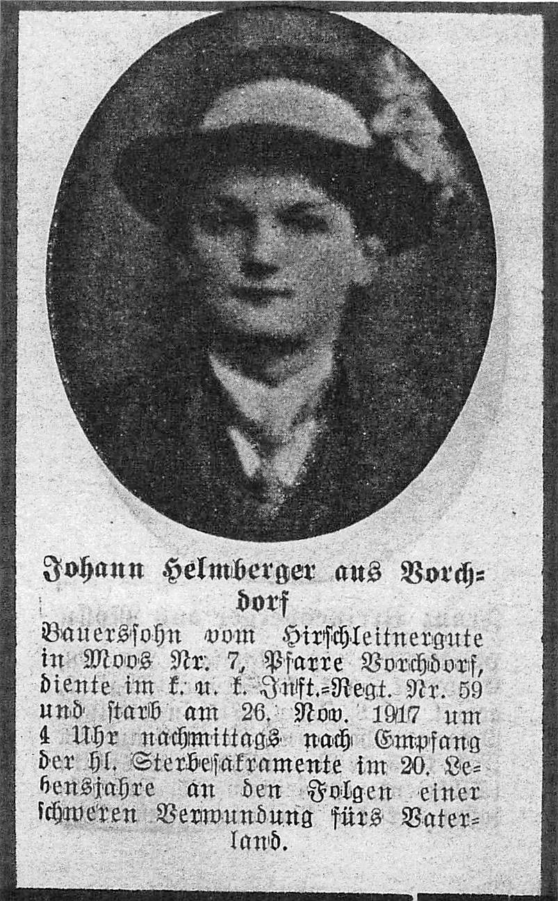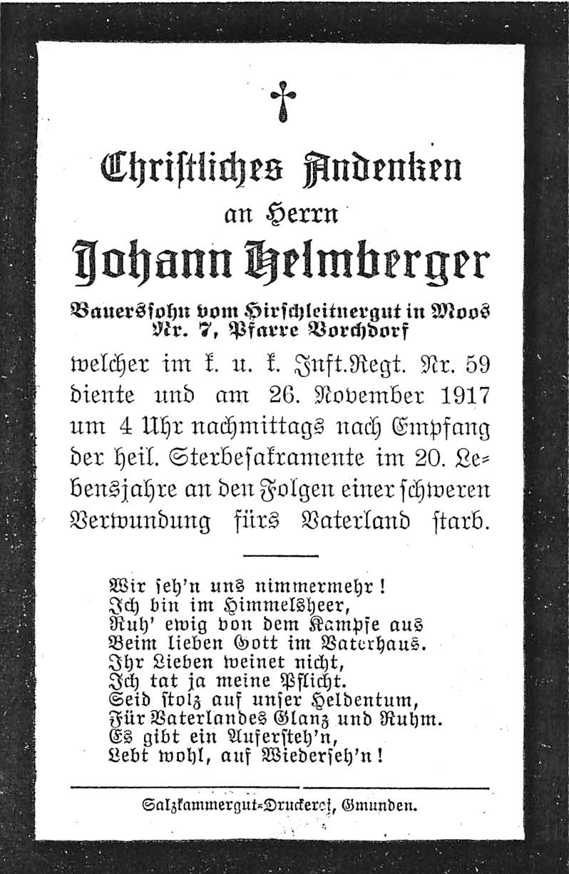 welcher im k.u.k. Infanterie-Regiment Nr.59 diente und um 4 Uhr nachmittags an den Folgen einer schweren Verwundung fürs Vaterland starb