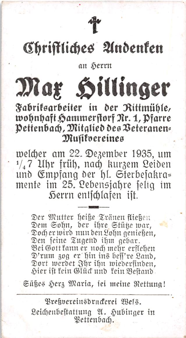 Gestorben am Sonntag, 22. Dezember 1935 im 25. Lebensjahr