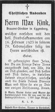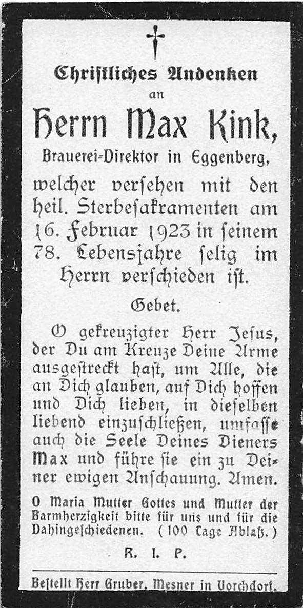 Gestorben am Freitag, 16. Februar 1923 im 78. Lebensjahr