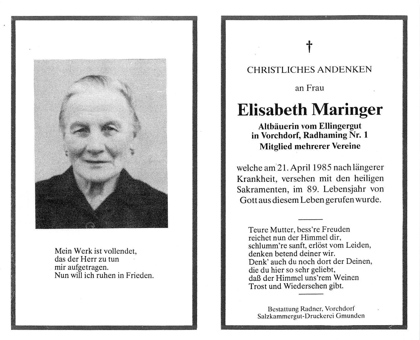Gestorben am Sonntag, 21. April 1985 im 89. Lebensjahr