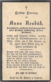 Gestorben am Freitag, 06. März 1891 im 70. Lebensjahr
