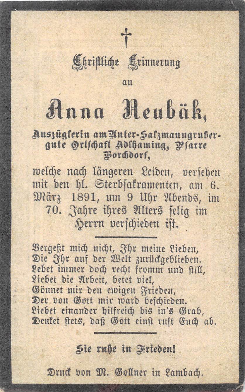 Auszüglerin Unter-Salzmanngrubergut in Adlham.