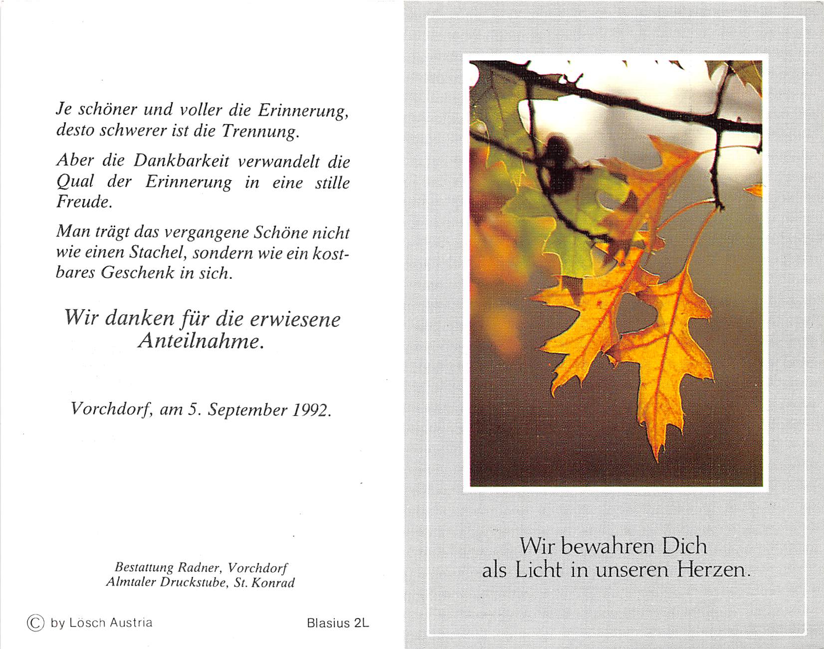 Gestorben am Donnerstag, 03. September 1992 im 79. Lebensjahr