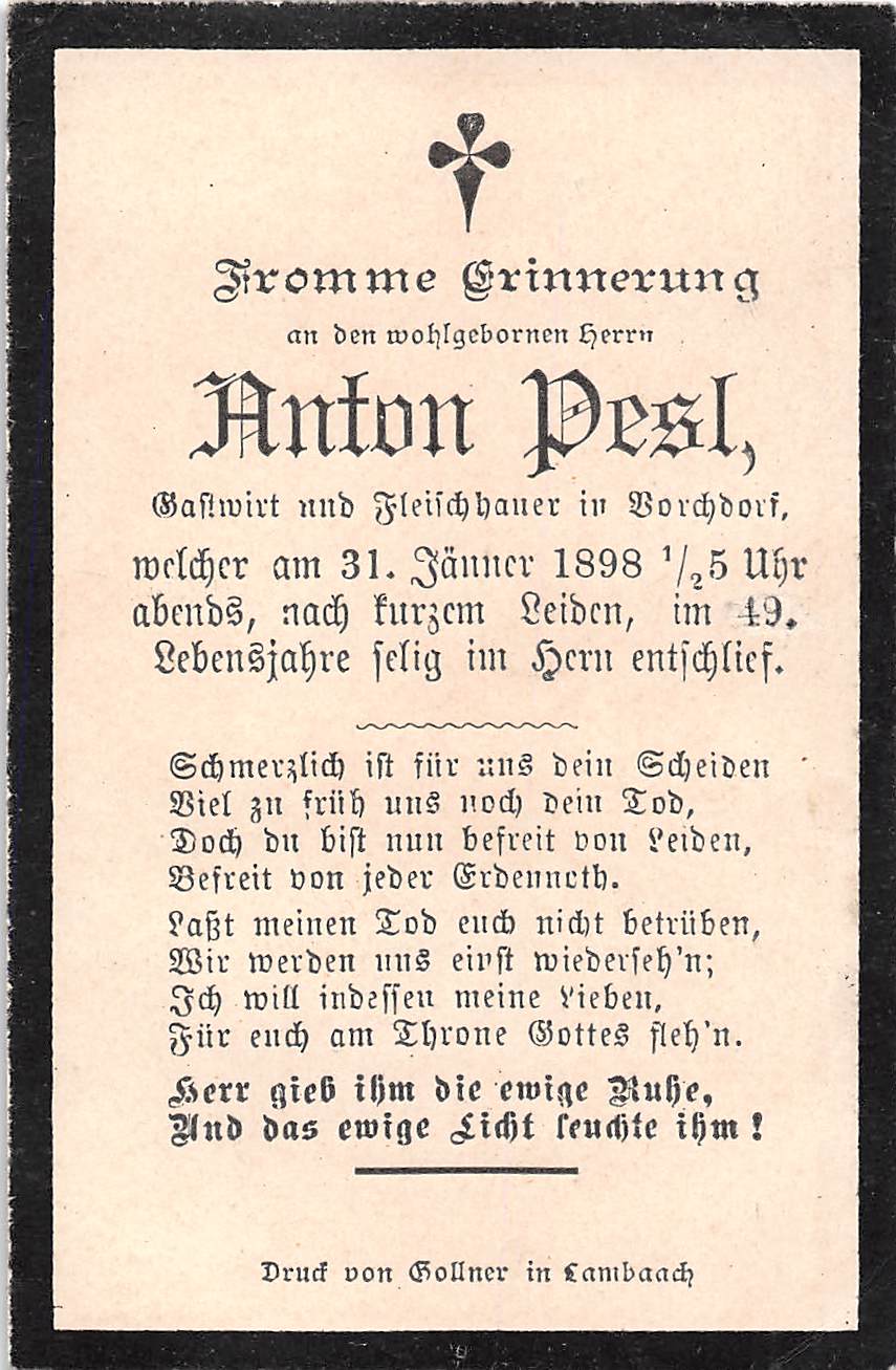 Gestorben am Montag, 31. Januar 1898 im 49. Lebensjahr