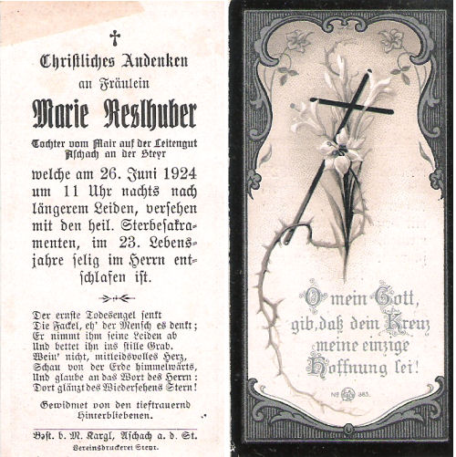 Gestorben am Donnerstag, 26. Juni 1924 im 24. Lebensjahr