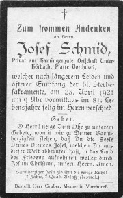 Gestorben am Samstag, 23. April 1921 im 81. Lebensjahr