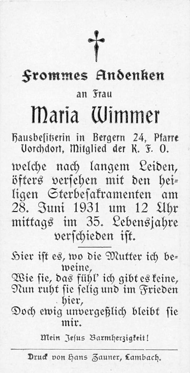 Gestorben am Sonntag, 28. Juni 1931 im 35. Lebensjahr