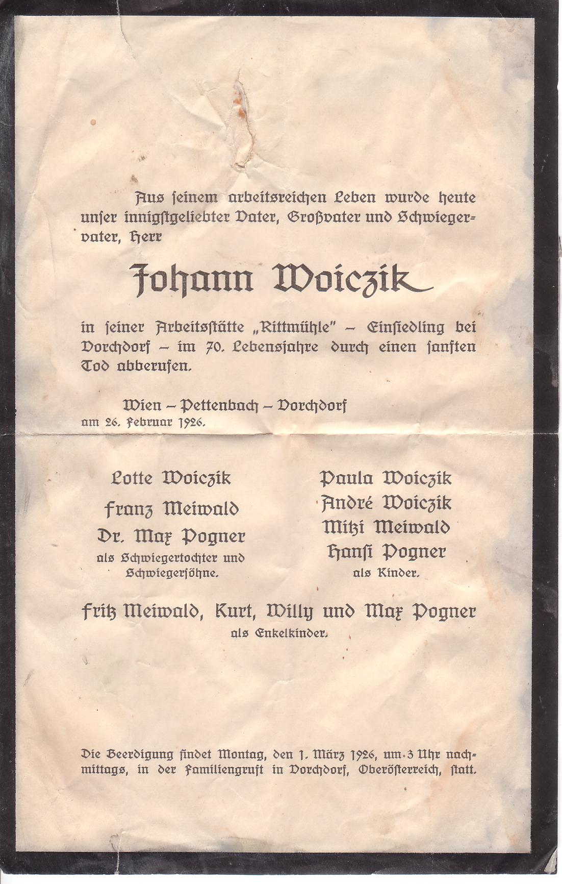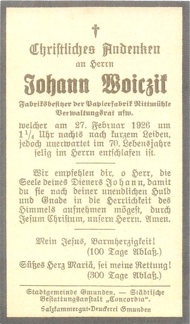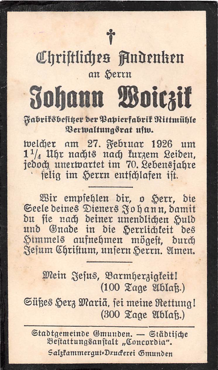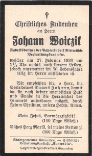Gestorben am Samstag, 27. Februar 1926 im 70. Lebensjahr