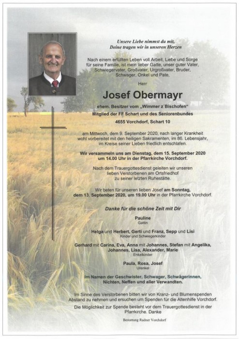 Obermayr Josef | 09.09.2020 | 07.10.2020 - 20:00 | 07.10.2020 - 20:00 |