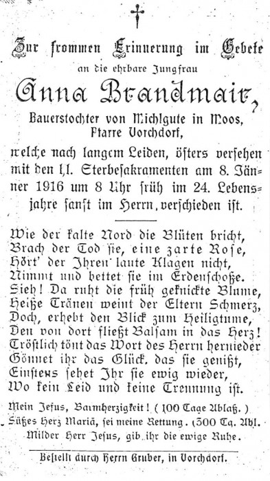 Brandmair Anna | 23 | 08.01.1916 | Moos | Vorchdorf | Bauerstochter |