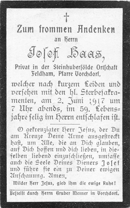 Haas Josef | 58 | 02.06.1917 | Feldham | Vorchdorf | Privat in der |