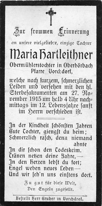Hartleithner Maria | 11 | 27.11.1915 | Oberhörbach | Vorchdorf | Obermühlerstochter in |