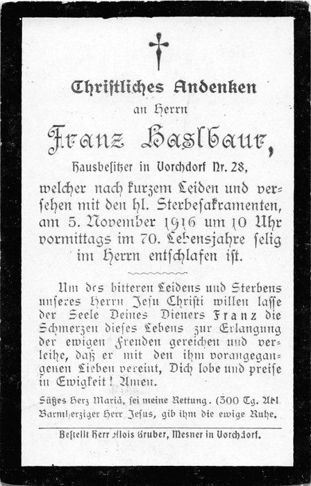 Haslbaur Franz | 69 | 05.11.1916 | Vorchdorf 28 | Vorchdorf | Hausbesitzer |