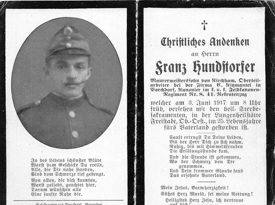 Hundstorfer Franz | 24 | 03.06.1917 | Kirchham | Kirchham | Oberteilarbeiter |