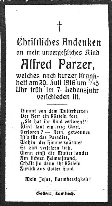 Parzer Alfred | 6 | 30.07.1916 | Berg 1 | Vorchdorf | |