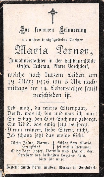 Perner Maria | 13 | 19.03.1916 | Lederau | Vorchdorf | Inwohnerstochter in der |