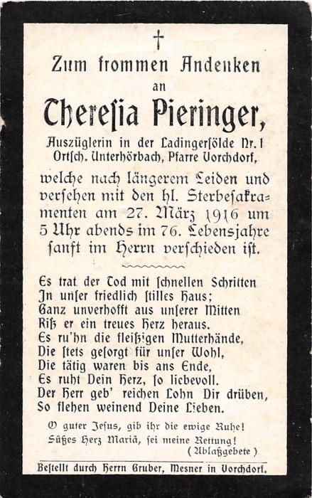 Pieringer Theresia | 75 | 27.03.1916 | Unterhörbach | Vorchdorf | Auszüglerin |