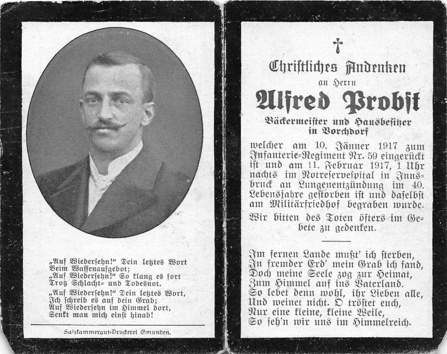 Probst Alfred | 39 | 11.02.1917 | Vorchdorf | Innsbruck | Bäckermeister und Hausbes. |