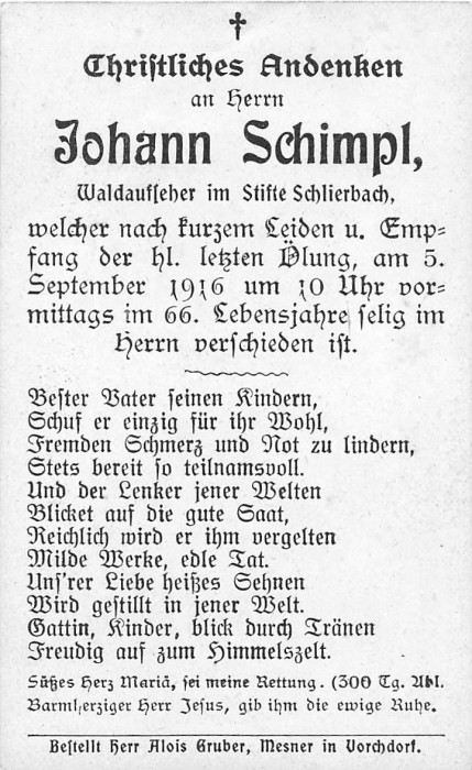 Schimpl Johann | 65 | 05.09.1916 | Vorchdorf | Waldaufseher im | |
