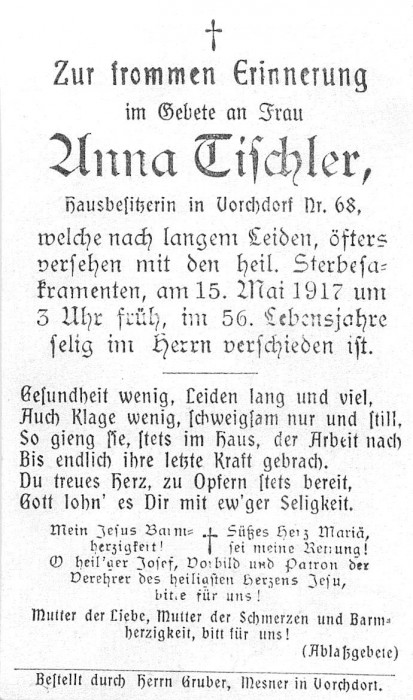 Tischler Anna | 55 | 15.05.1917 | Vorchdorf 68 | Vorchdorf | Hausbesitzerin |