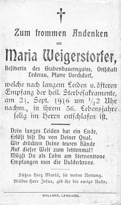 Weigerstorfer Maria | 55 | 21.09.1916 | Lederau | Vorchdorf | Besitzerin |