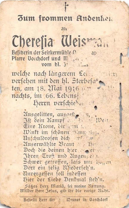 Weismann Theresia | 65 | 18.05.1916 | Vorchdorf | Besitzerin | |