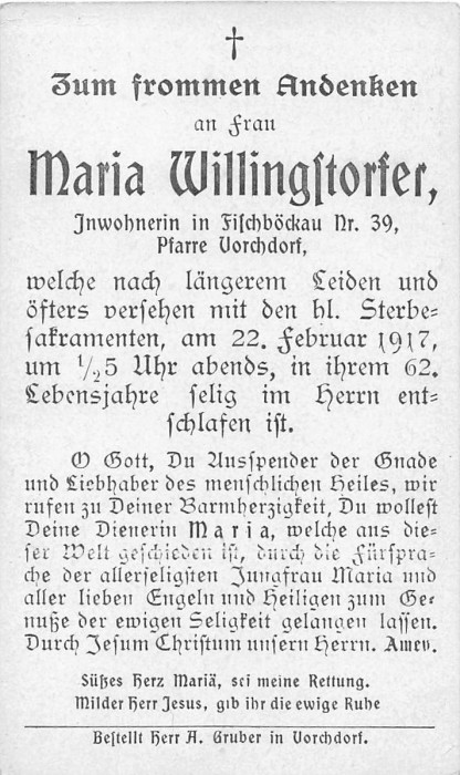 Willingstorfer Maria | 61 | 22.02.1917 | Fischböckau 39 | Vorchdorf | Inwohnerin |